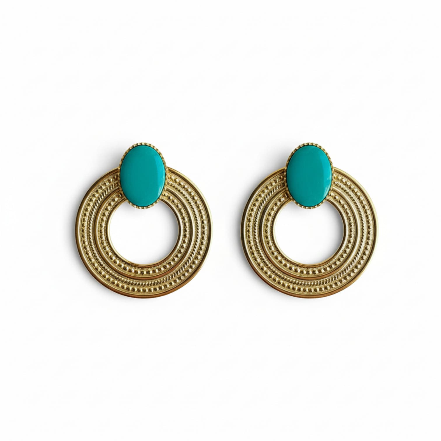 Chaque cabochon est unique, créé avec soin et passion dans notre atelier. Les motifs circulaires gravés apportent une touche d'élégance bohème à ces bijoux.